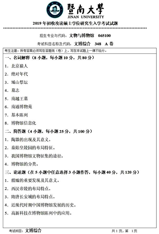 2019年暨南大学《348文博综合》考研真题