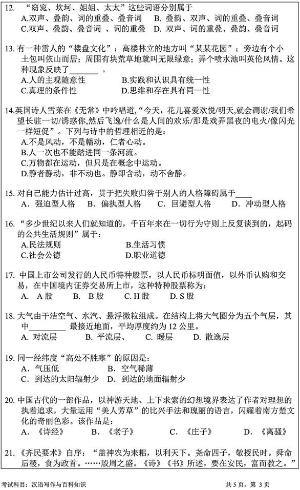 2017暨南大学《448汉语写作与百科知识》考研真题