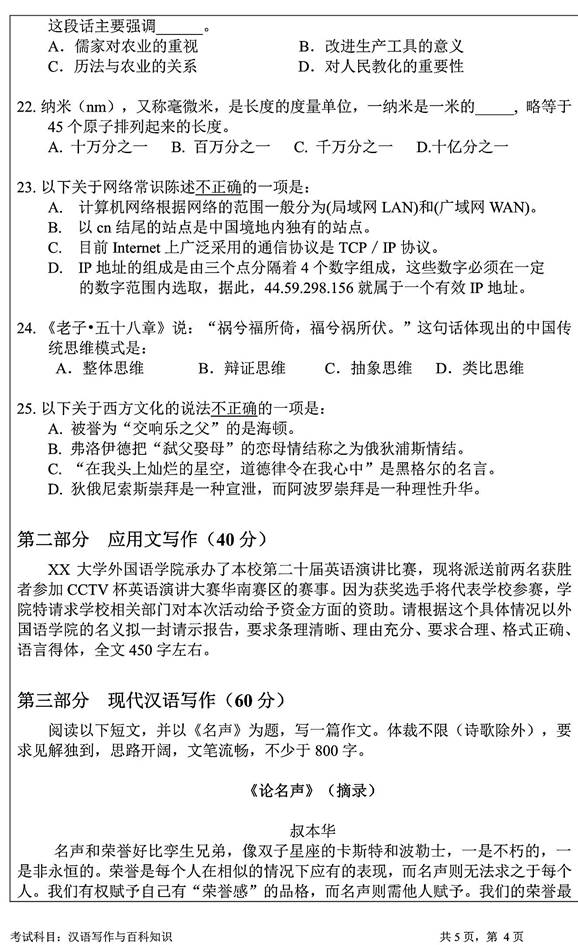 暨南大学外国语学院《448汉语写作与百科知识》历年考研真题汇总