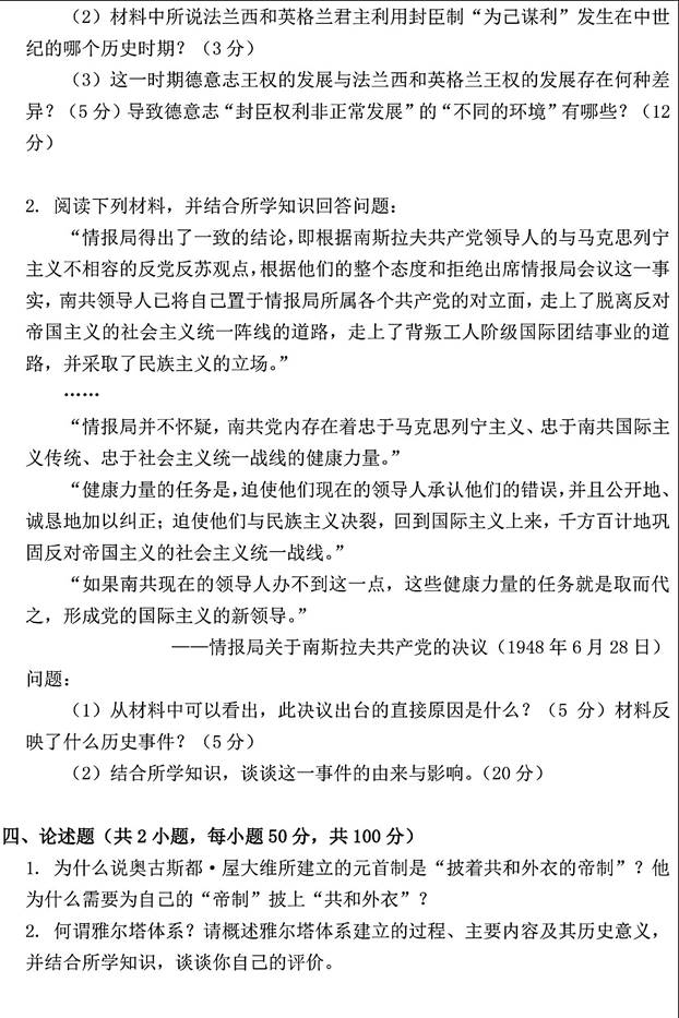 2. 全国名校世界史考研真题