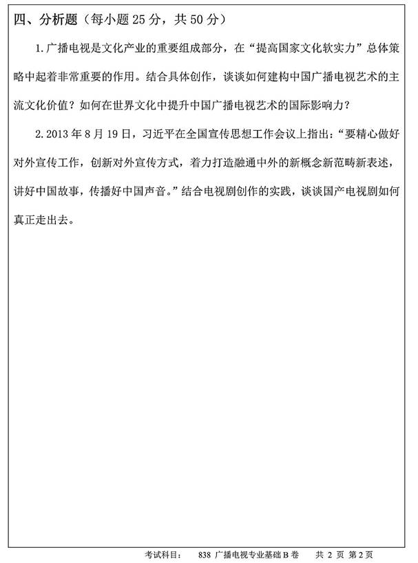 1. 暨南大学新闻与传播学院《838广播电视专业基础》[专业硕士]历年考研真题汇总