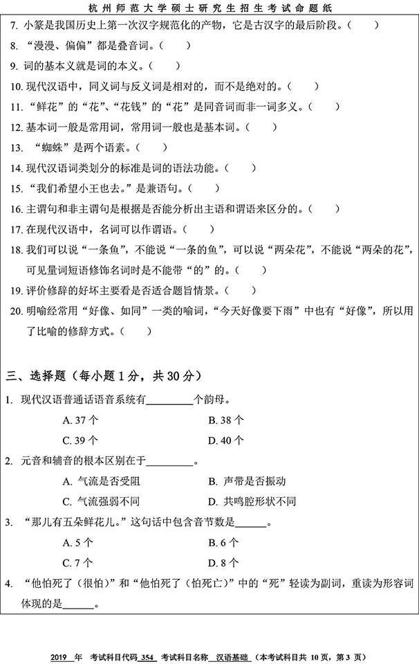 3. 汉语国际教育硕士《354汉语基础》名校考研真题