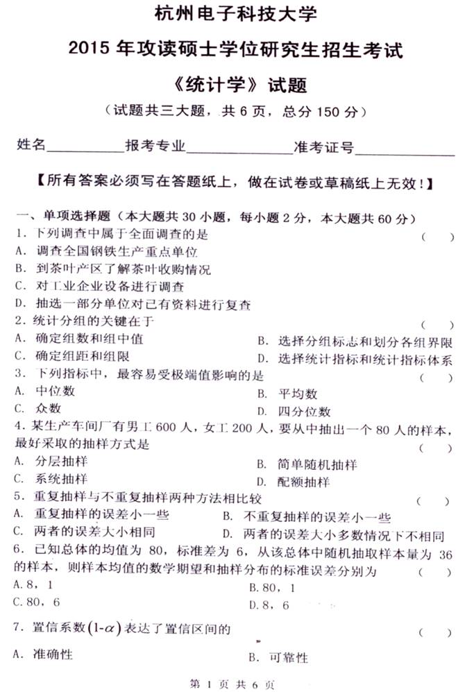 1. 杭州电子科技大学经济学院《432统计学》[专业硕士]历年考研真题汇总