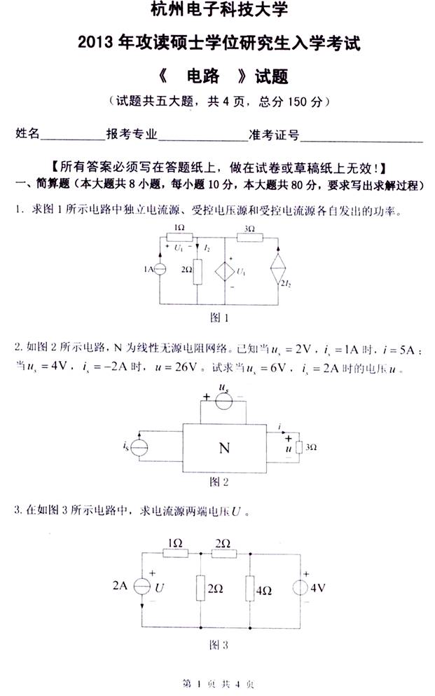 1. 杭州电子科技大学自动化学院《862电路》历年考研真题汇总