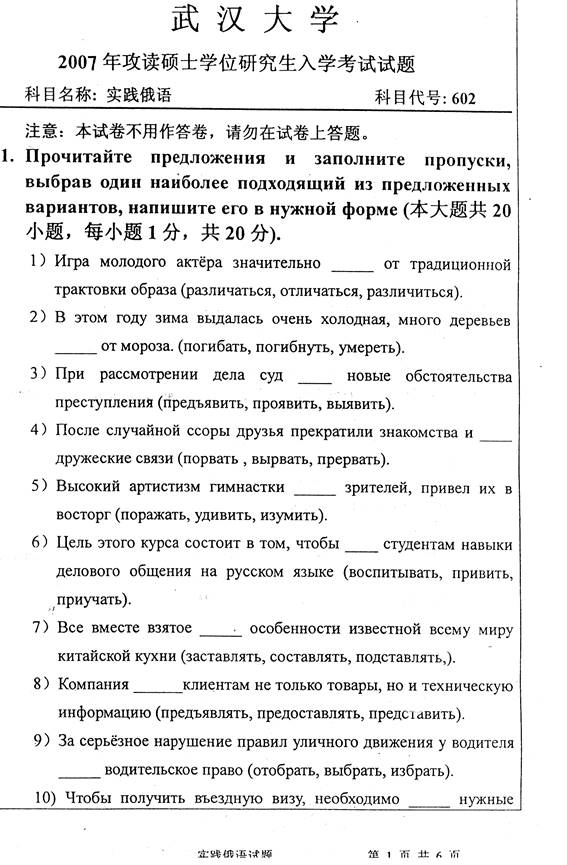 1. 武汉大学外国语言文学学院《612实践俄语》历年考研真题汇总