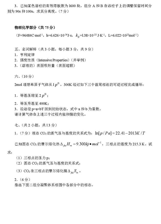 2. 全国名校物理化学考研真题汇总(含部分答案)