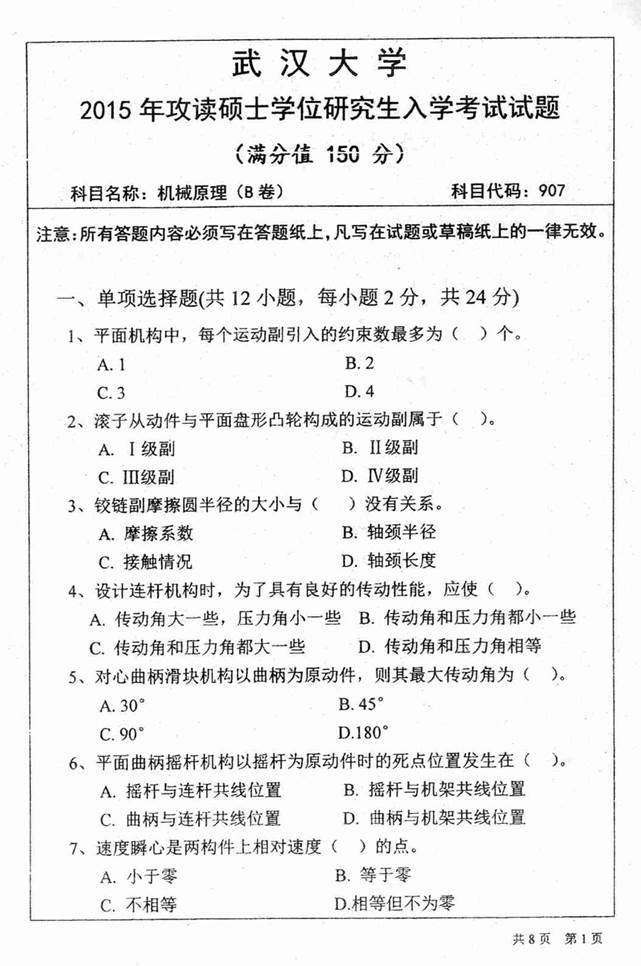 回复关键词【武汉大学907】或【武汉大学机械原理】