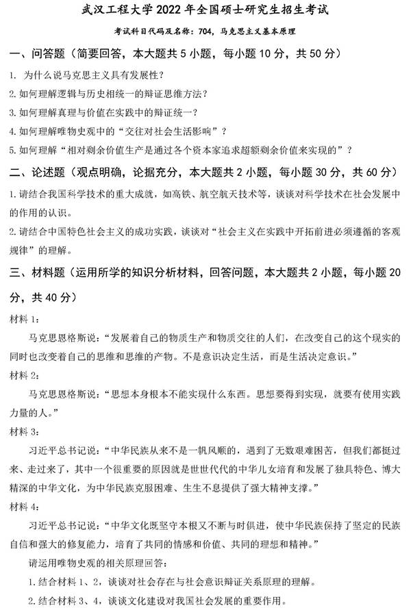 2022年武汉工程大学《704马克思主义基本原理》考研真题