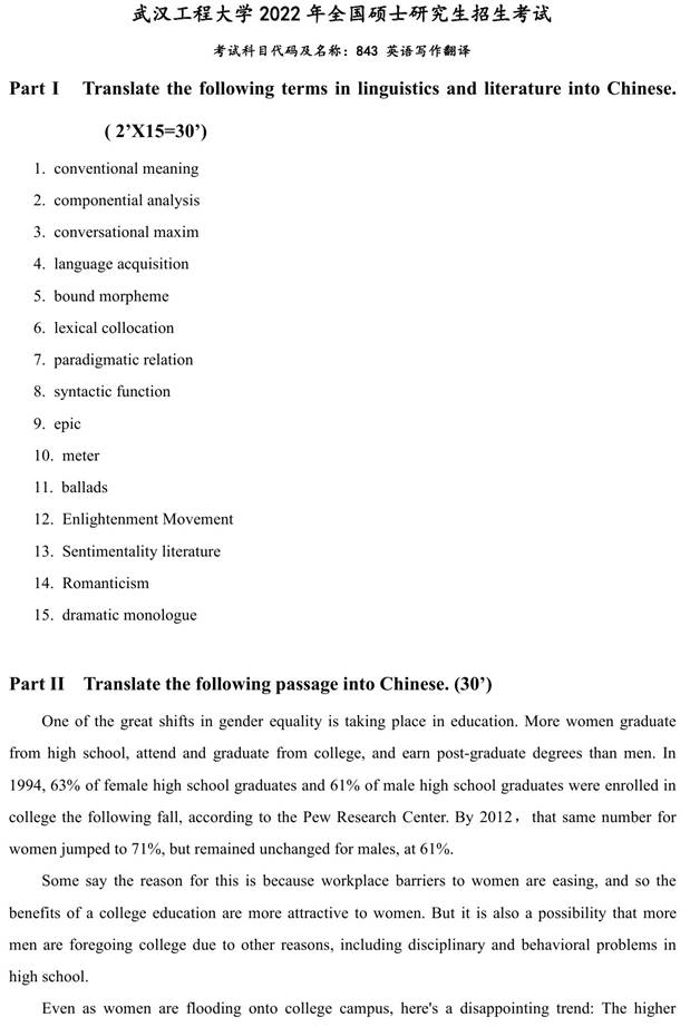 2022年武汉工程大学《843英语写作翻译》考研真题