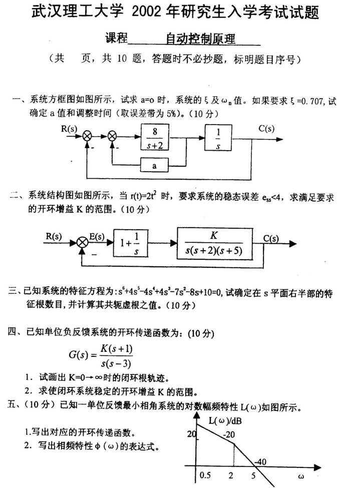 2010年武汉理工大学848自动控制原理(第1到第7题手写版答案)