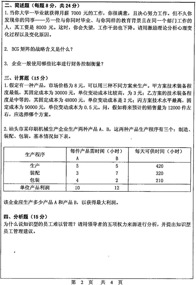 1. 汕头大学商学院《管理学》历年考研真题汇总