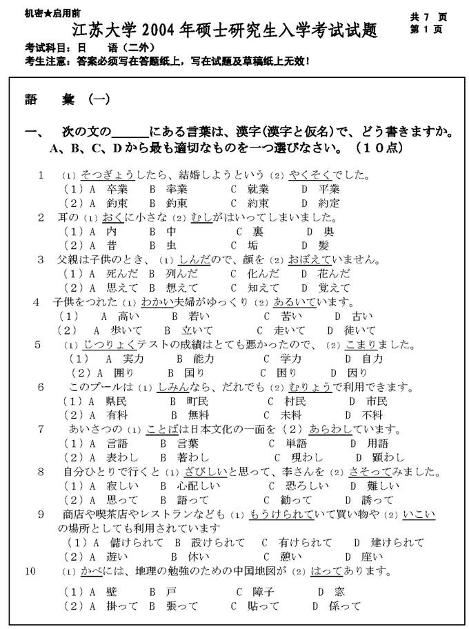 2010年江苏大学《241日语(二外)》考研真题