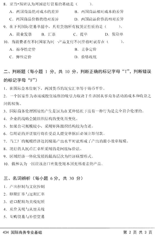 3. 国际商务硕士《434国际商务专业基础》名校考研真题汇总