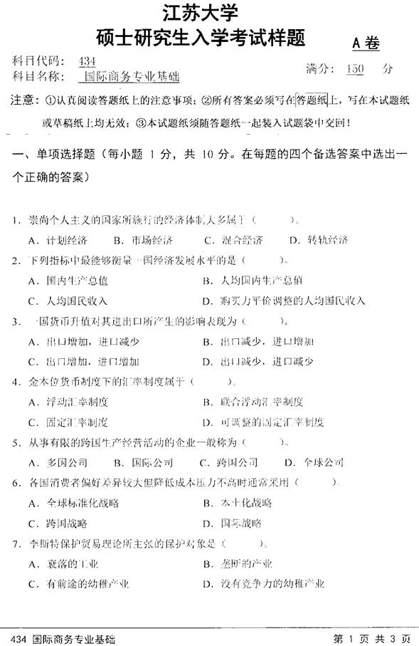 1. 江苏大学财经学院《434国际商务专业基础》历年考研真题汇总