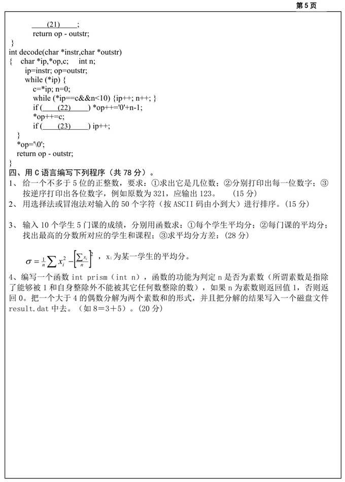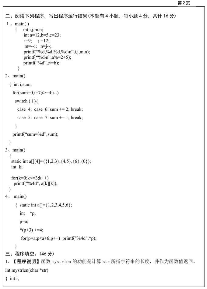 2. 全国名校C语言程序设计考研真题汇总