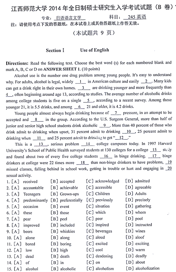 1. 江西师范大学国际教育学院《245二外英语》历年考研真题汇总