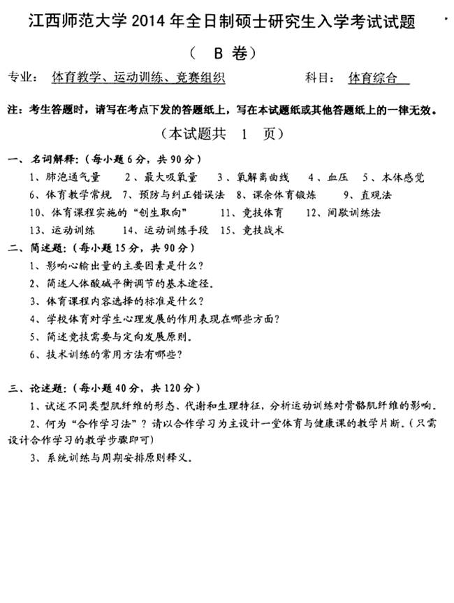 2014年江西师范大学346体育综合[专业硕士]考研真题