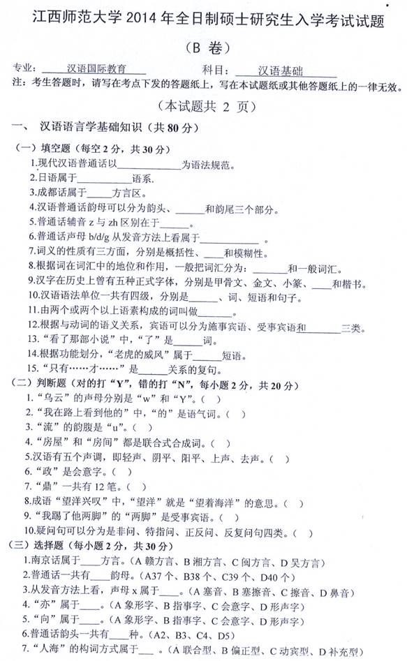 1. [电子书]江西师范大学文学院《354汉语基础》[专业硕士]历年考研真题汇总