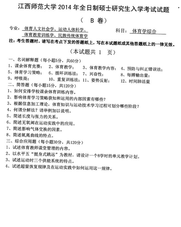 1. 江西师范大学体育学院《710体育学综合(含学校体育学、运动生理学)》历年考研真题汇总