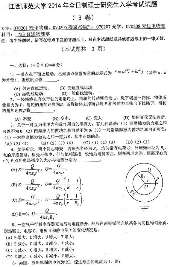 1. 江西师范大学物理与通信电子学院《723普通物理学》历年考研真题汇总