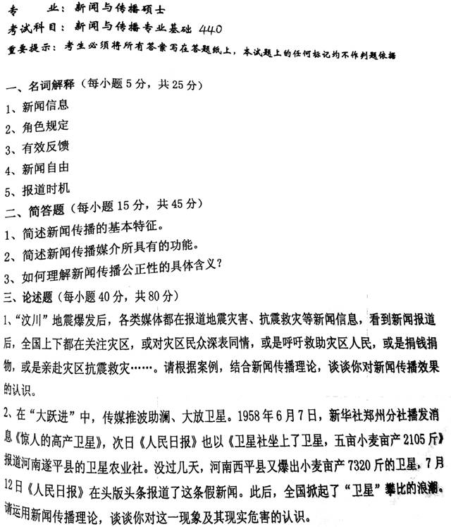 4. 新闻与传播硕士《440新闻与传播专业基础》名校考研真题(2016年前)详解(含暨大、川大等)