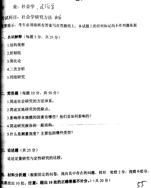 1. 江西财经大学人文学院《816社会学研究方法》历年考研真题汇总