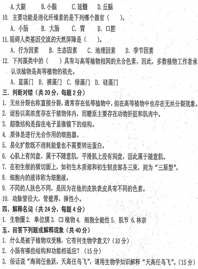 2. 全国名校普通生物学考研真题汇总(含部分答案)