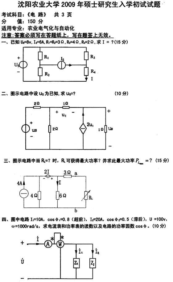 1. [电子书]沈阳农业大学信息与电气工程学院《807电路》[专业硕士]历年考研真题汇总