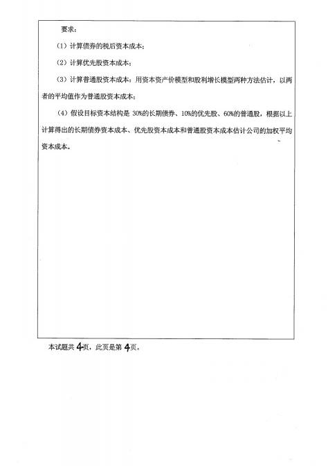(3)公司现有普通股:当前市价50元,最近一次支付的股利为4.19元/股,预期股利的永续增长率为5%,该股票的贝塔系数为1.2,公司不准备发行新的普通股。
