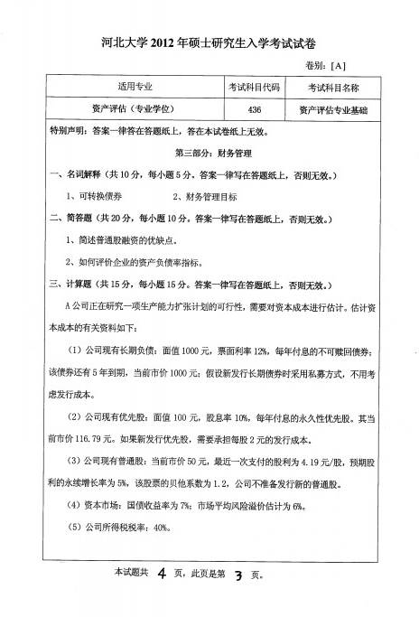 1. 河北大学《436资产评估专业基础》历年考研真题汇总(含部分答案)