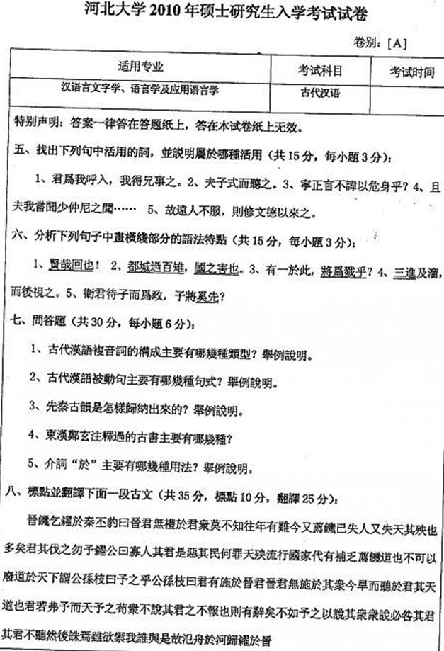 1. 河北大学文学院《818古代汉语》历年考研真题汇总