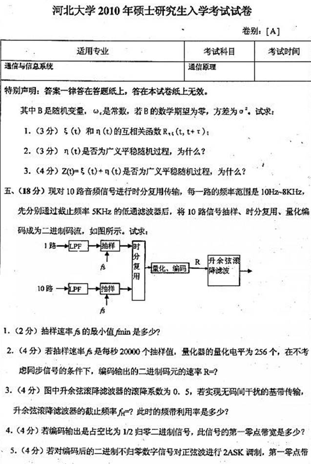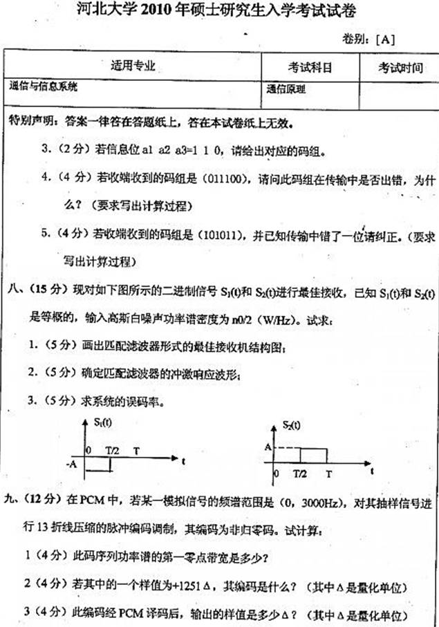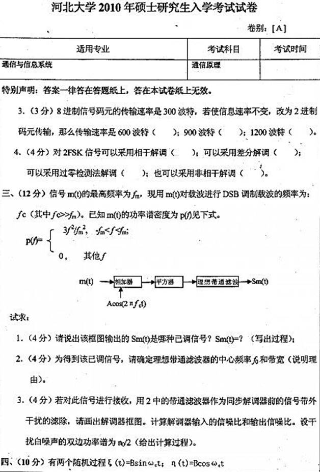 2010年河北大学《860通信原理》考研真题
