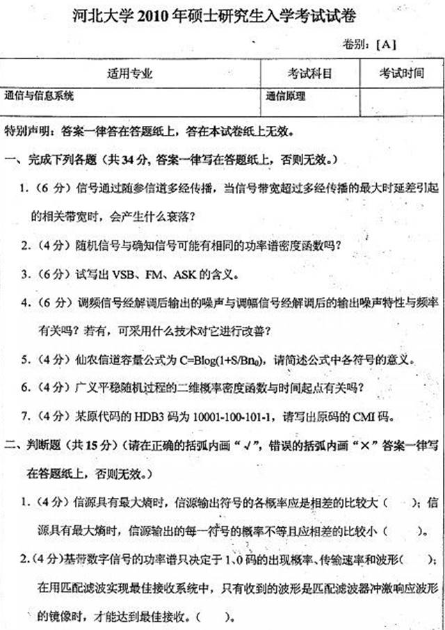 1. 河北大学电子信息工程学院《860通信原理》历年考研真题汇总