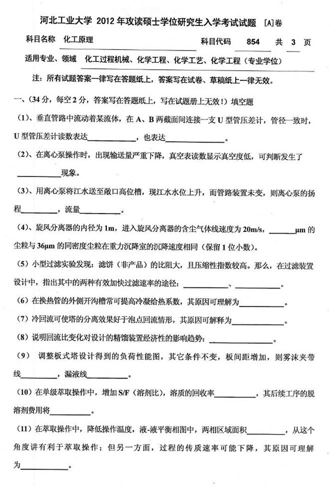 1. 河北工业大学化工学院《化工原理》历年考研真题汇总