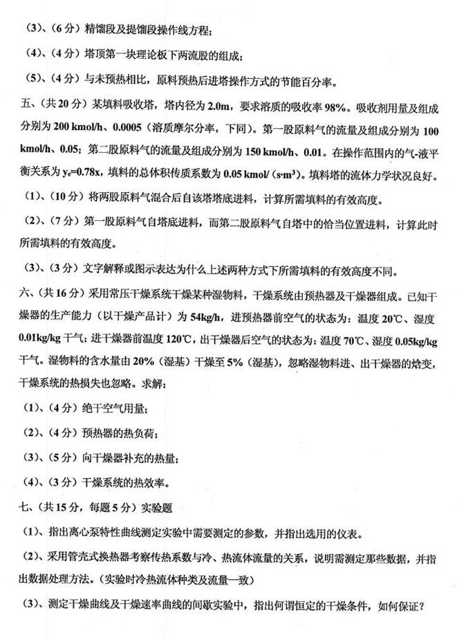 2. 全国名校化工原理考研真题汇总(含部分答案)
