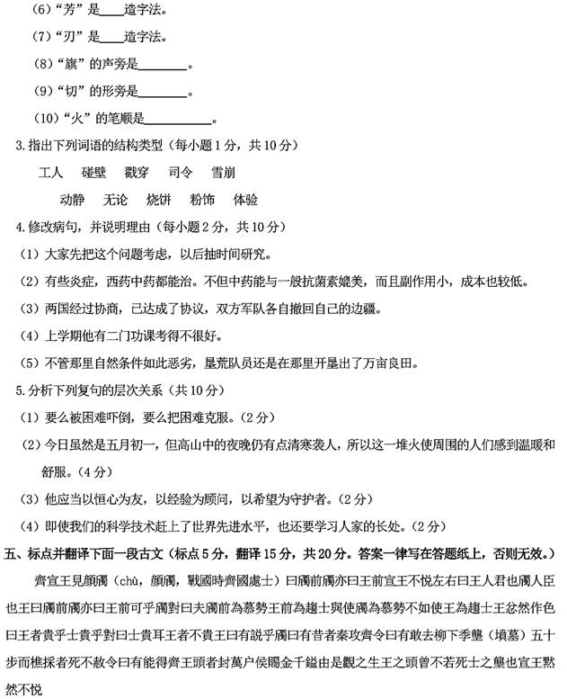 3. 汉语国际教育硕士《354汉语基础》名校考研真题
