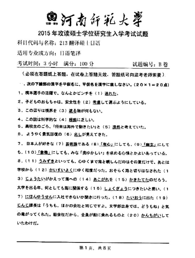 2015年河南师范大学外国语学院213翻译硕士日语[专业硕士]考研真题