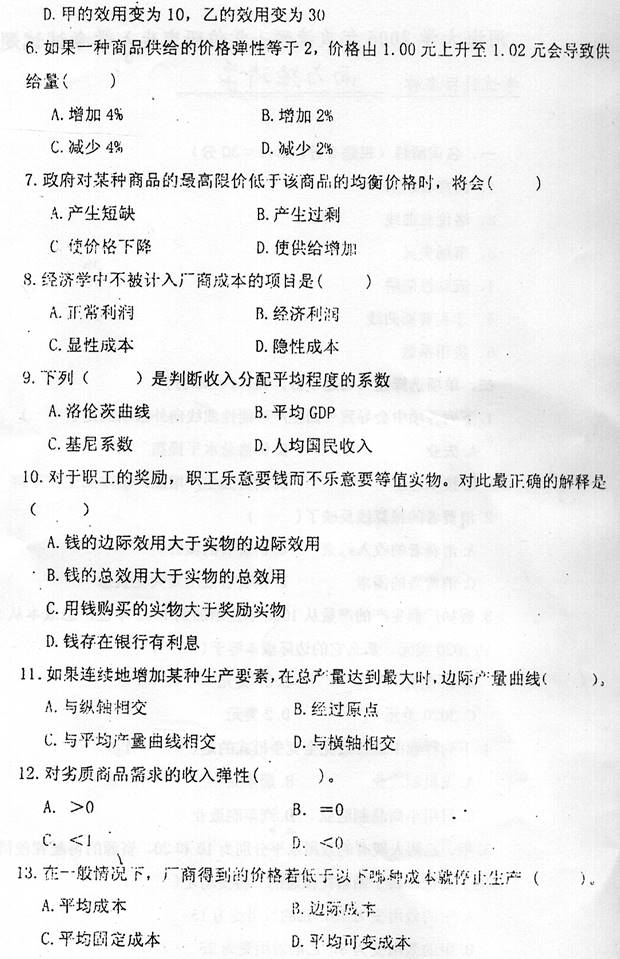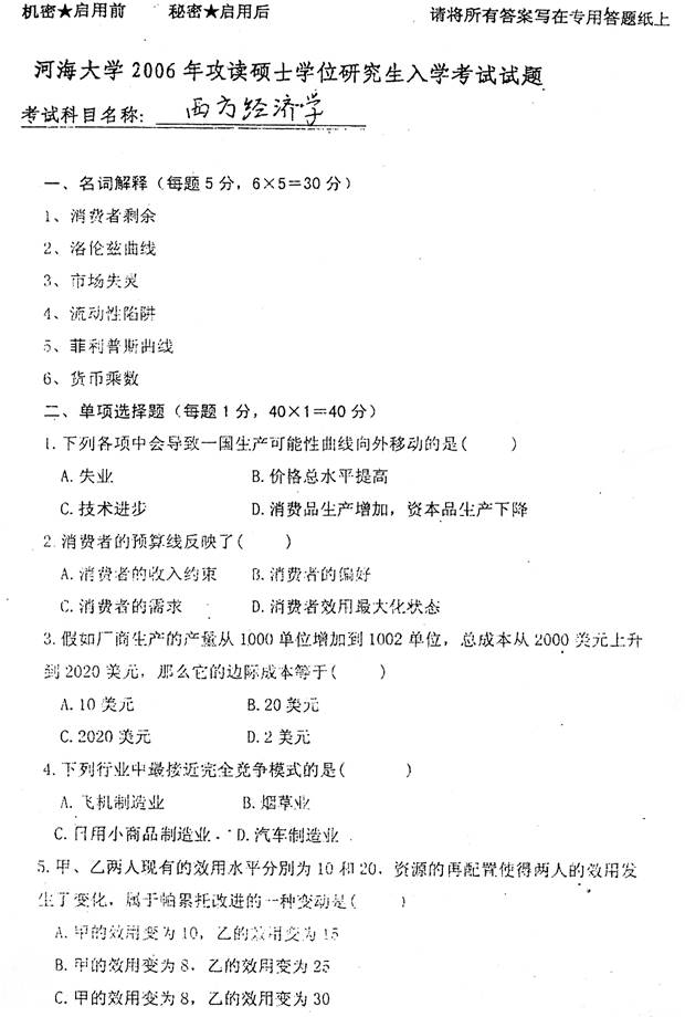2006年河海大学商学院《856西方经济学》考研真题