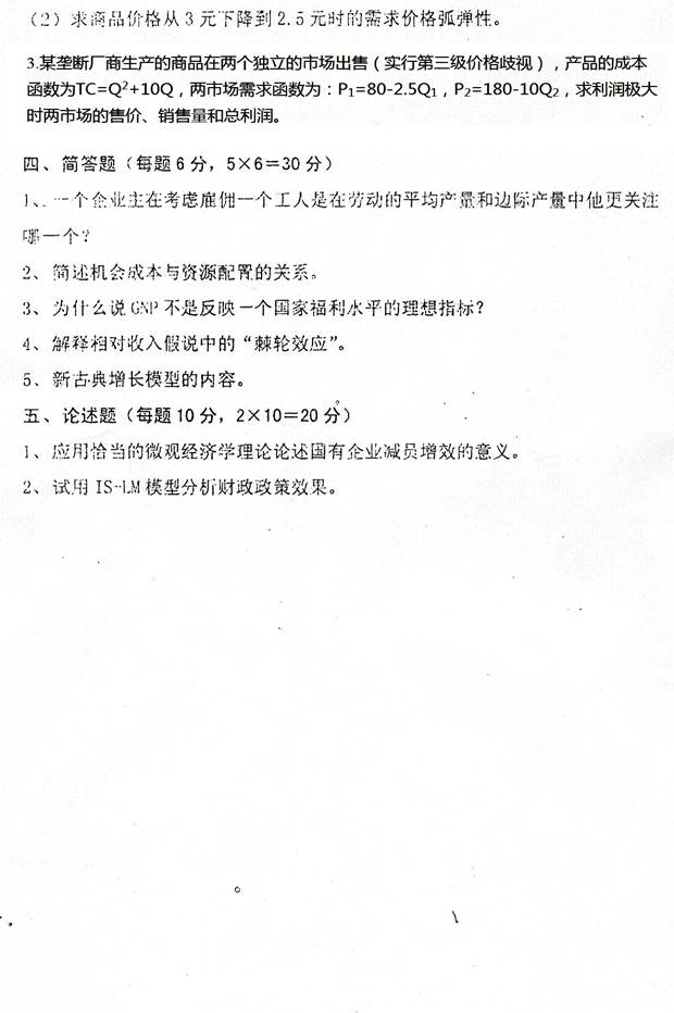 4. 全国名校经济学考研真题