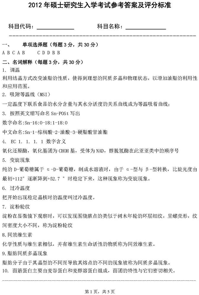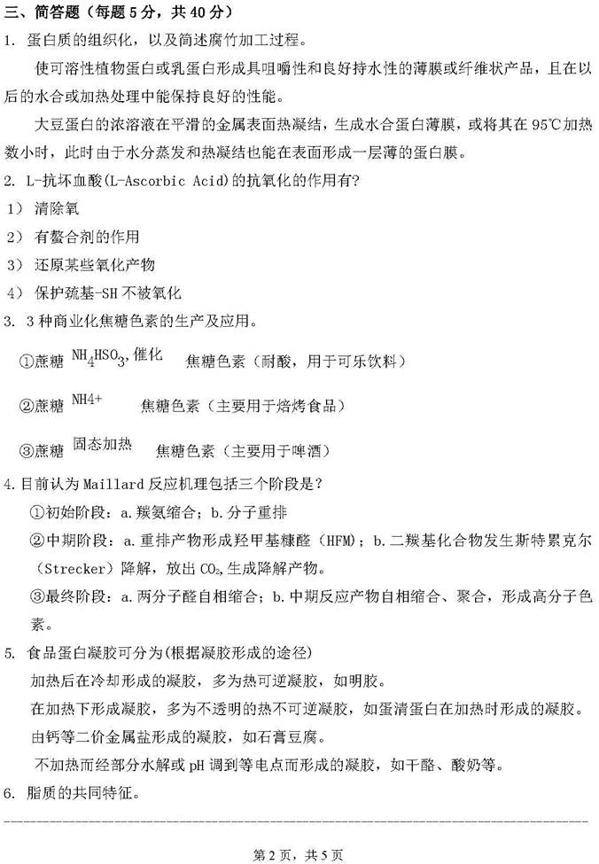 1. [电子书]浙江农林大学农业与食品科学学院《826食品化学》历年考研真题汇总(含部分答案)