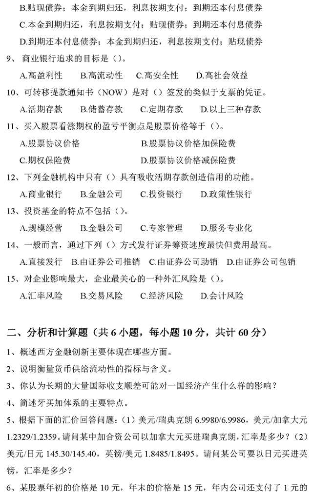 2015年浙江大学经济学院431金融学综合[专业硕士]考研真题(回忆版)