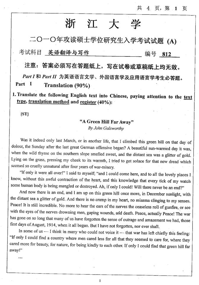 1. 浙江大学外国语言文化与国际交流学院《812英语翻译与写作》历年考研真题汇总(含答案)