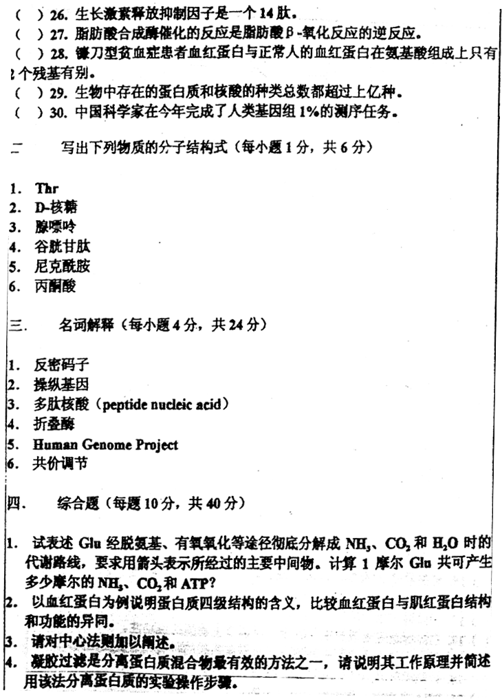 2011年浙江大学《830生物化学与分子生物学》考研真题(回忆版)