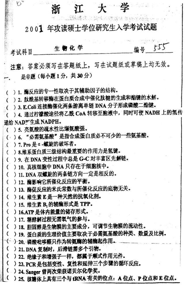 2. 全国名校生物化学考研真题汇总(含部分答案)