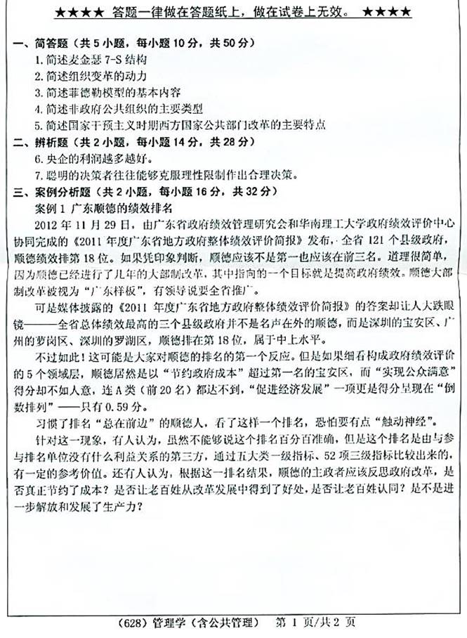1. 浙江工业大学公共管理学院《628管理学(含公共管理学)》历年考研真题汇总