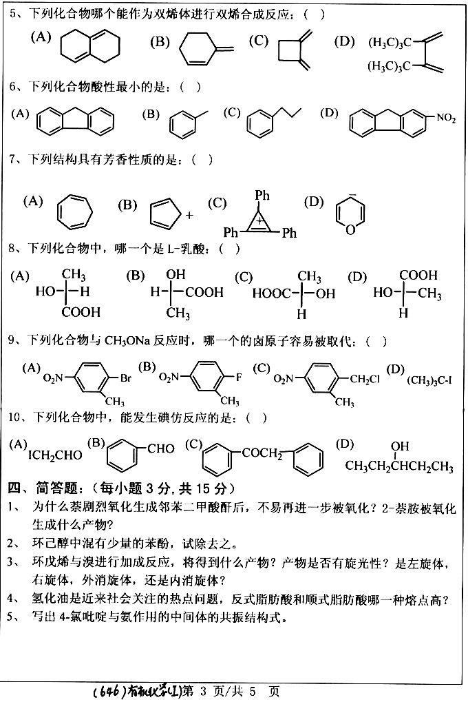 2012年浙江工业大学《646有机化学(Ⅰ)》考研真题