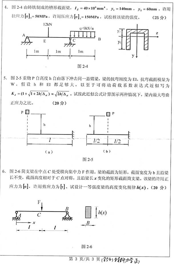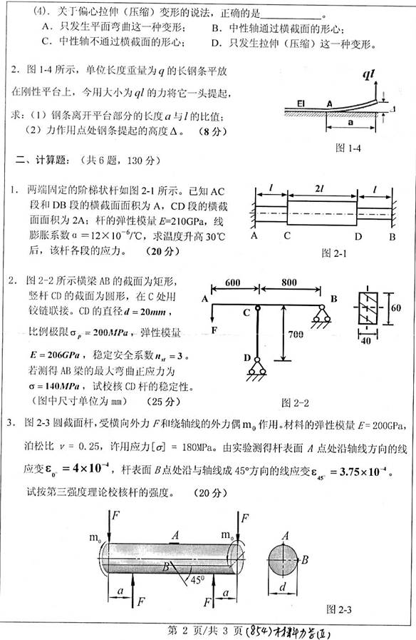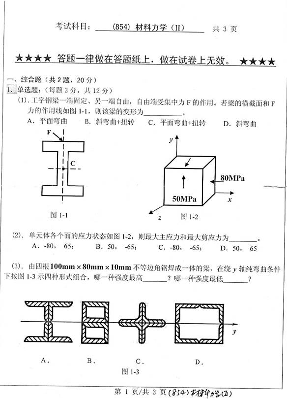 1. 浙江工业大学土木工程学院《854材料力学(II)》历年考研真题汇总