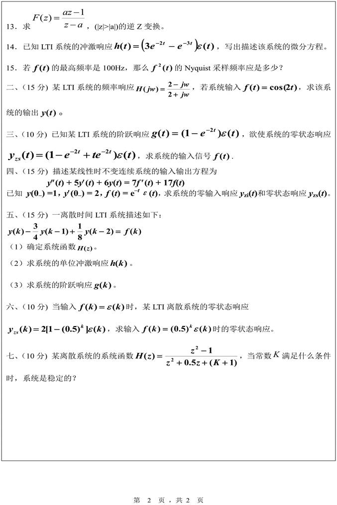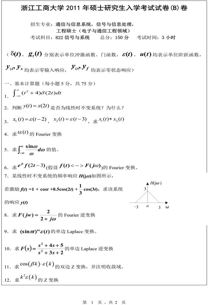 1. 浙江工商大学信息与电子工程学院《822信号与系统》历年考研真题汇总