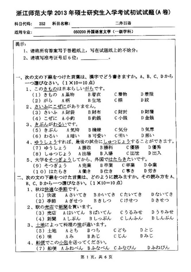 1. 浙江师范大学外国语学院《252二外日语》历年考研真题汇总