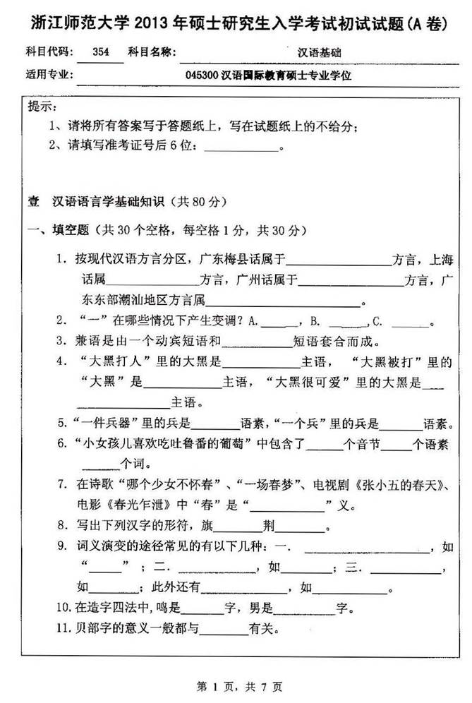 3. 汉语国际教育硕士《354汉语基础》名校考研真题